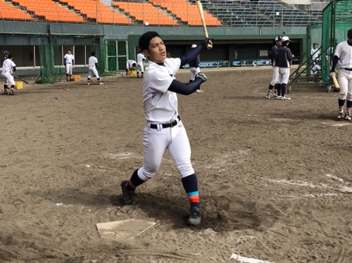 ロングティバッティングの様子 1年南準(東洋大姫路)
